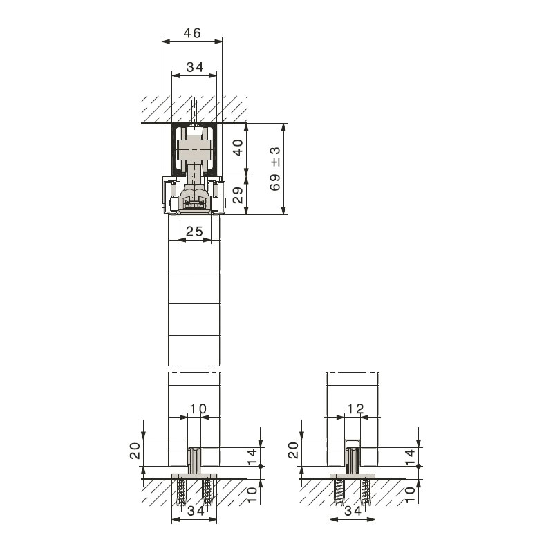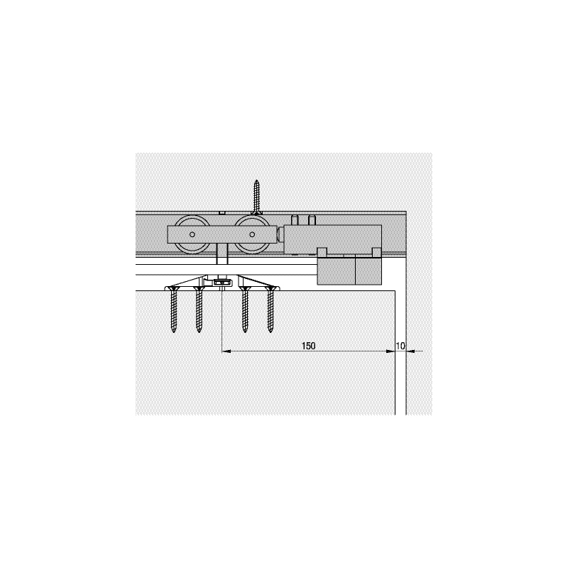 Largeur de porte : 500 à 1200 mm.La garniture complète sans rail se compose de :