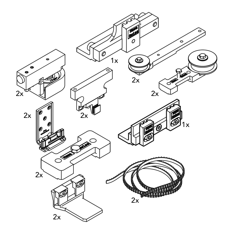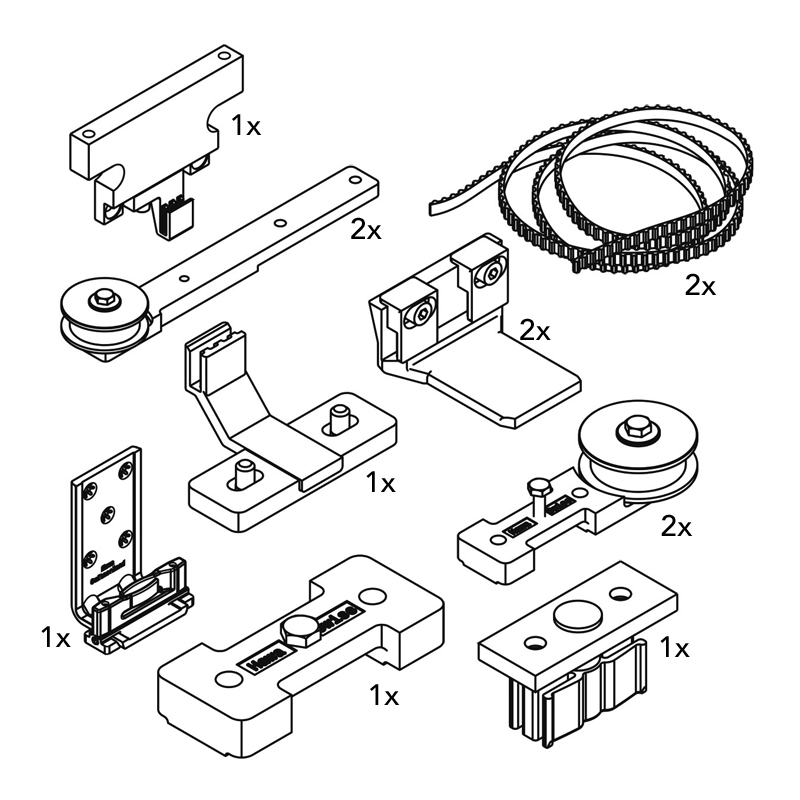 Mécanismes d'entrainement adaptés aux garniture Junior 80Z permettant d'ouvrir simultanément : 2 vantaux dans un sens droite ou gauche 3 vantaux dans un sens droite ou gauche 4 vantaux dans les sens opposés [...]