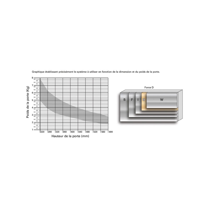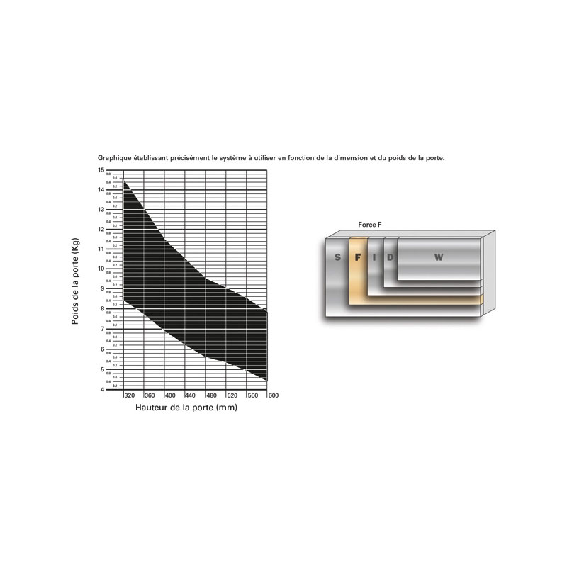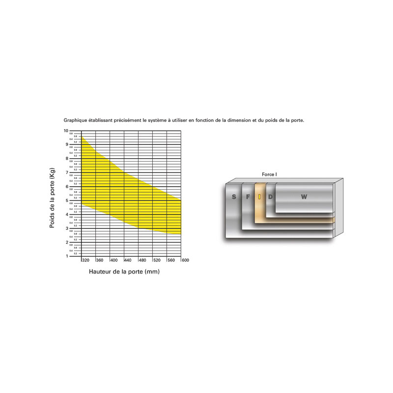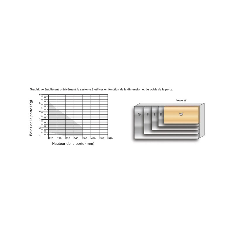 Système relevant WIND équipé d'un système d'amortissement intégré pour une fermeture douce.5 forces de ressorts en fonction du poids et de la hauteur de la porte.