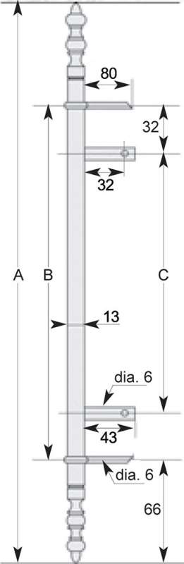 A partir de la dimension 1220 mm, les fiches sont livrées avec 3 lacets et 3 goujons ou 3 lames. Le 3ème lacet est situé au centre de la fiche.