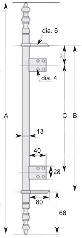 A partir de la dimension 1348mm, les fiches sont livrées avec 3 lacets et 3 goujons ou 3 lames. Le 3ème lacet est situé au centre de la fiche.