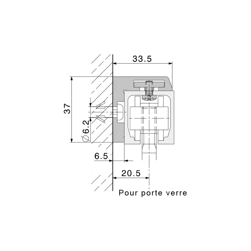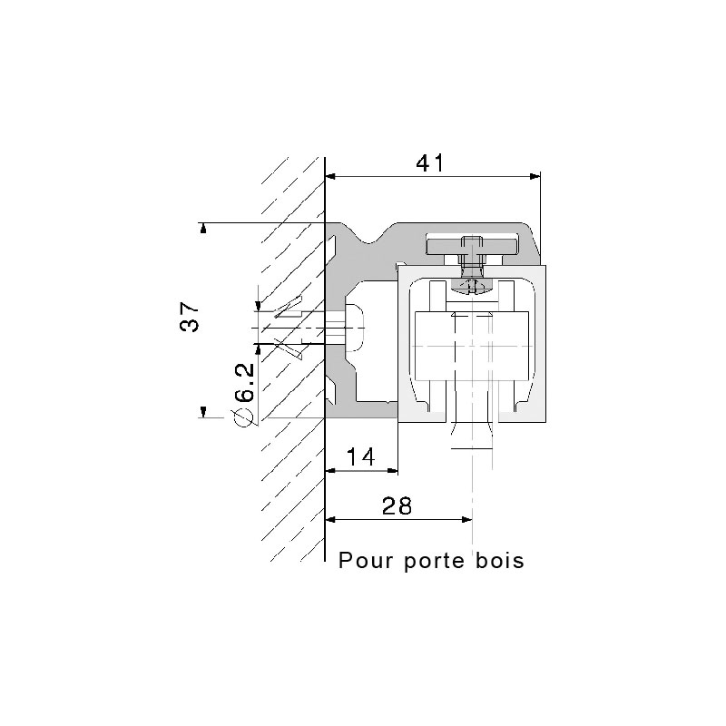 Équerre de fixation murale.Pré-percé.Pour porte bois ou verre.Junior 40.Vendu à la longueur.