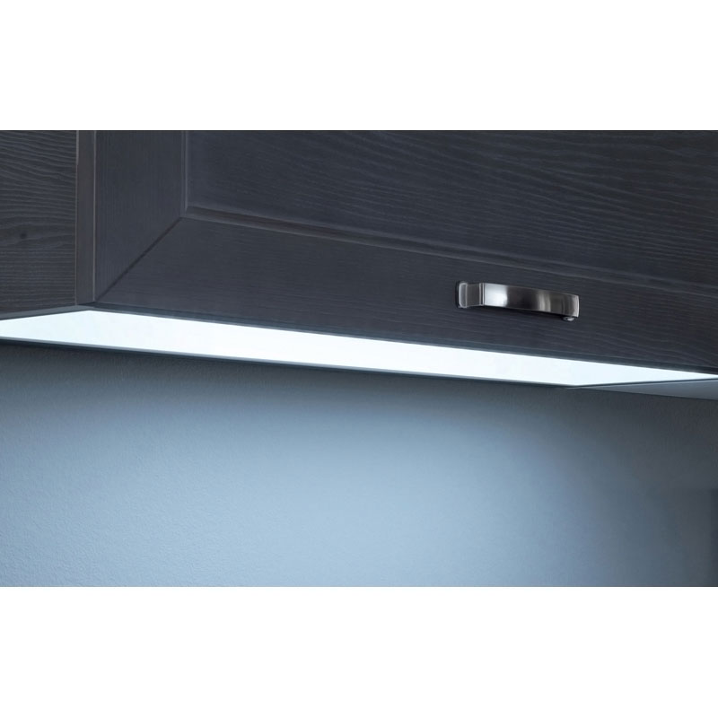 Eclairage sur les 2 faces.Permet un éclairage agréable et homogène du plan de travail.Eclaire aussi l’intérieur de votre meuble.Se fixe à la place du fond des meubles hauts de cuisine.