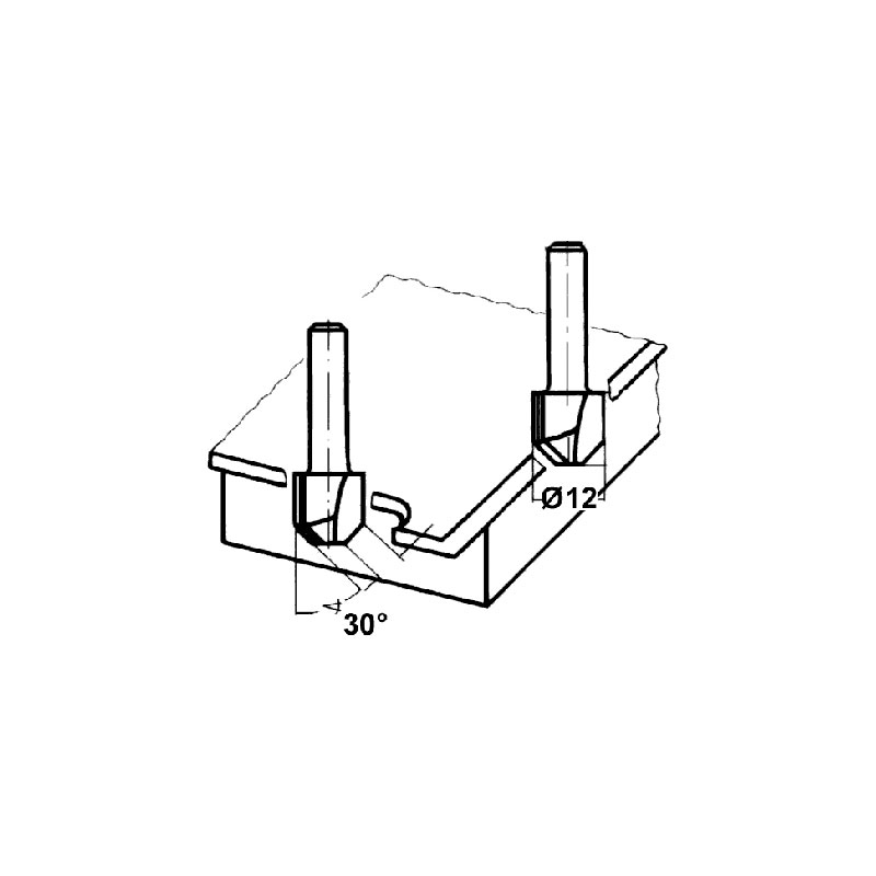 Fraise 2 coupes.Affleurage et chanfreinage des chants dans le bois et panneaux mélaminés.
