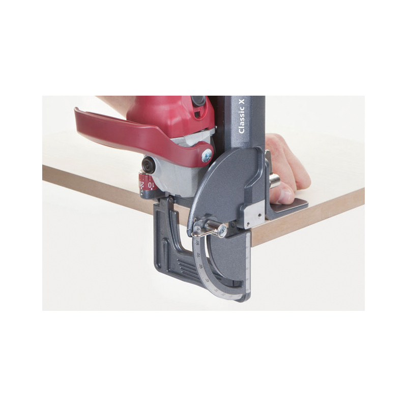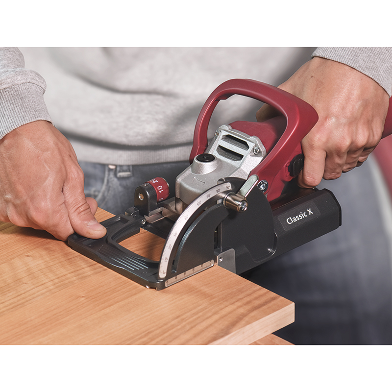 Classic X est la première fraiseuse à rainurer mise au point par l’inventeur de Lamello. Elle est destinée à l’usinage de la rainure de 4 mm. Éprouvée et bien pensée, la Classic X est rapide et polyvalente. Elle constitue la base d’une vaste gamme de produits avec des éléments d’assemblage fixes, auto-serrants et démontables. La précision dans tous les composants permet une adaptation parfaite dans les pièces à assembler et un gain de temps. La butée pivotante adaptable permet d‘obtenir des assemblages en onglets parfaits. L‘équerre de butée stabilisatrice permet à la fois un usinage en référencement extérieur et une stabilisation de la machine lors d‘un usinage en position verticale.