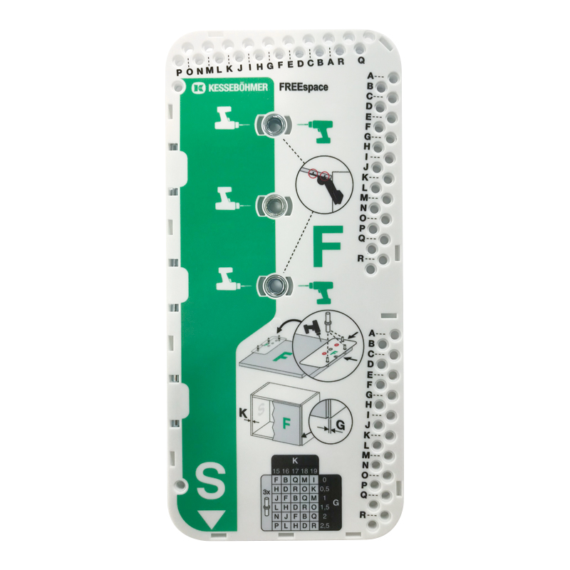 Gabarit de perçage 2 en 1.Pour paroi latérale et façade. Pour freeSpace mini et forte.