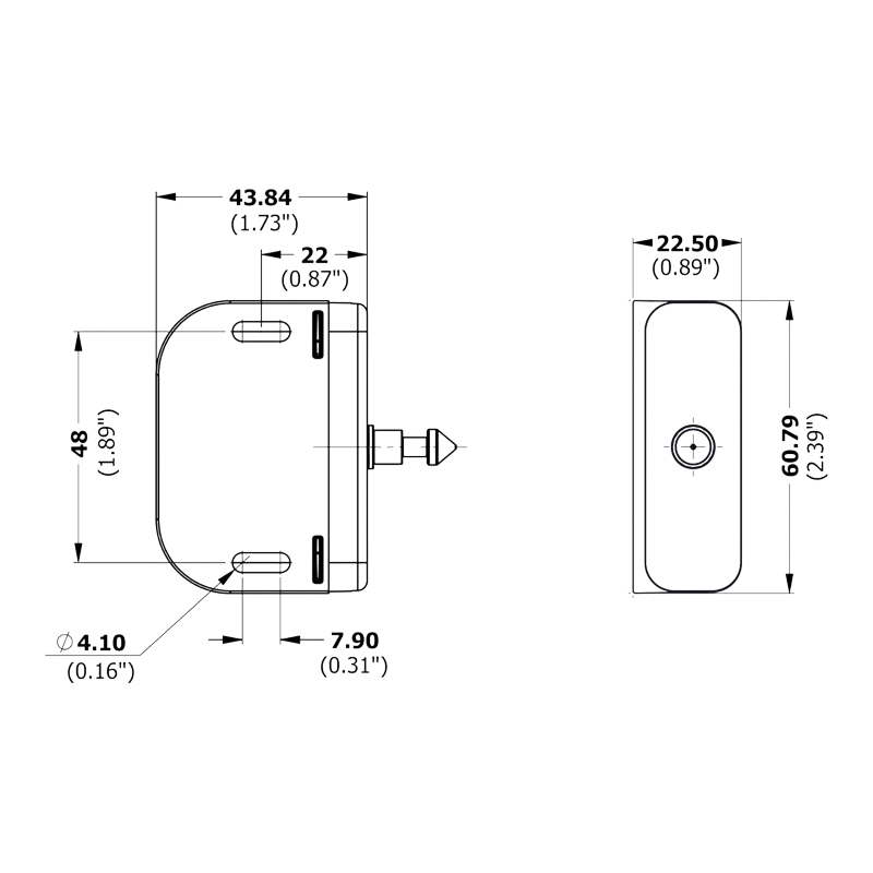 Gâche ajustable à ressort pour porte battante et tiroir, à utiliser avec la serrure électronique de meuble réf. 076 50000 00002.Version A : point de rupture entre 28 et 35kg.Verson B : point de rupture entre 50 et 55kg.