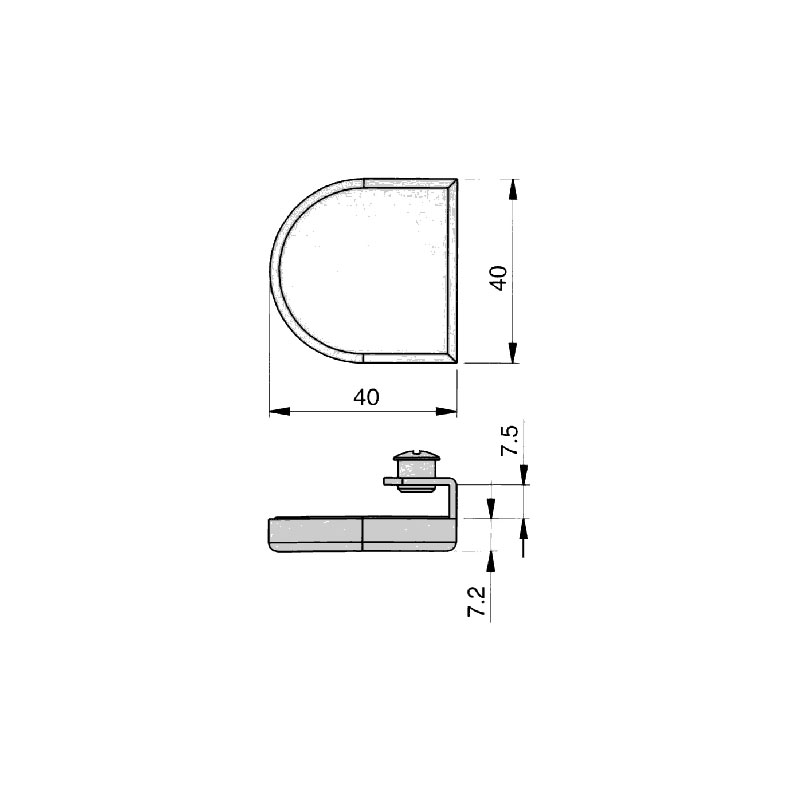 Gâche 40 x 40 mm.Pour serrure porte battante en verre.