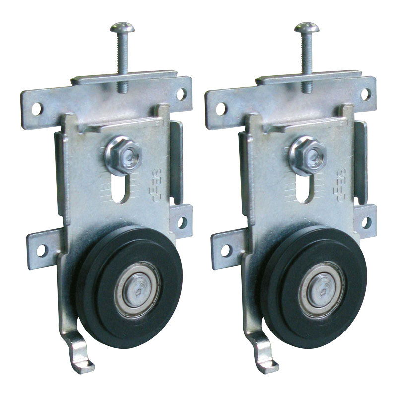 Roulement à billes de précision étanche à la poussière, avec un bandage de diamètre 42 mm.Equipé d'un système anti-déraillement pour assurer le maintien du vantail sur le rail.Galet de roulement réglable en hauteur.Utilisable avec profil de roulement bas 65 et 55.