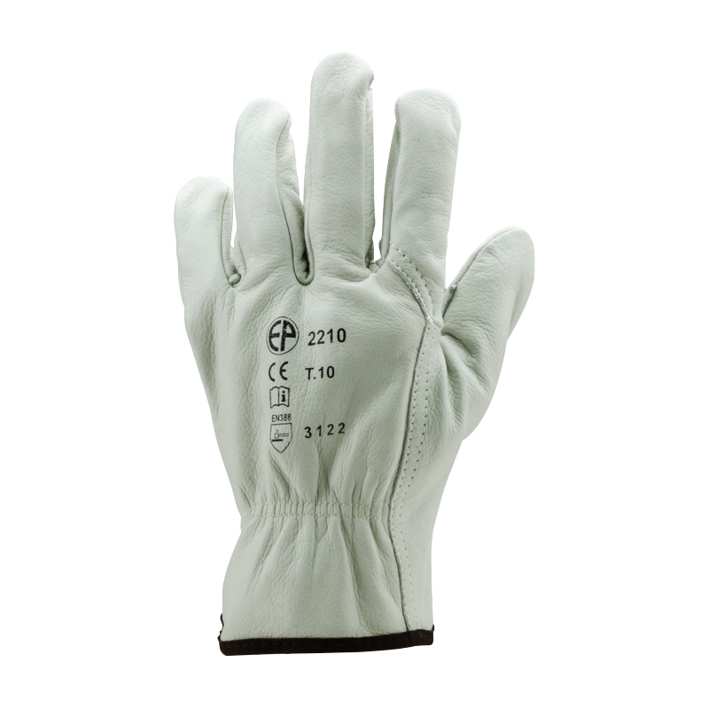 Gant de maîtrise en cuir tout fleur de vachette beige, Pouce palmé, Elastique de serrage au dos du poignet