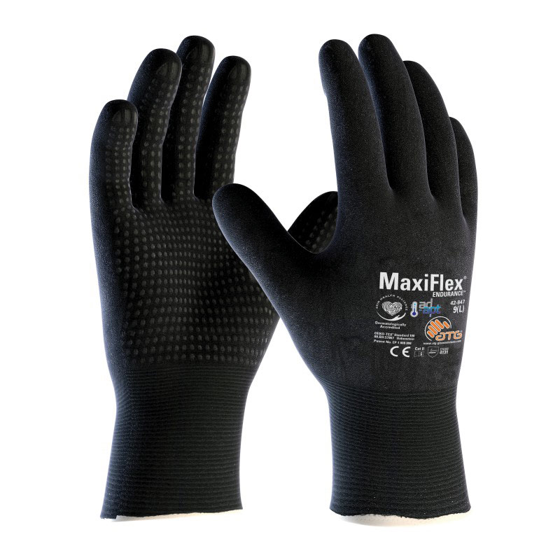 Support tricoté fin en Nylon/Lycra avec traitement de régulation thermique AD-APT enduction totale en micro mousse de Nitrile/protège artères picots Nitrile sur la paume pour une meilleure préhension et pour [...]