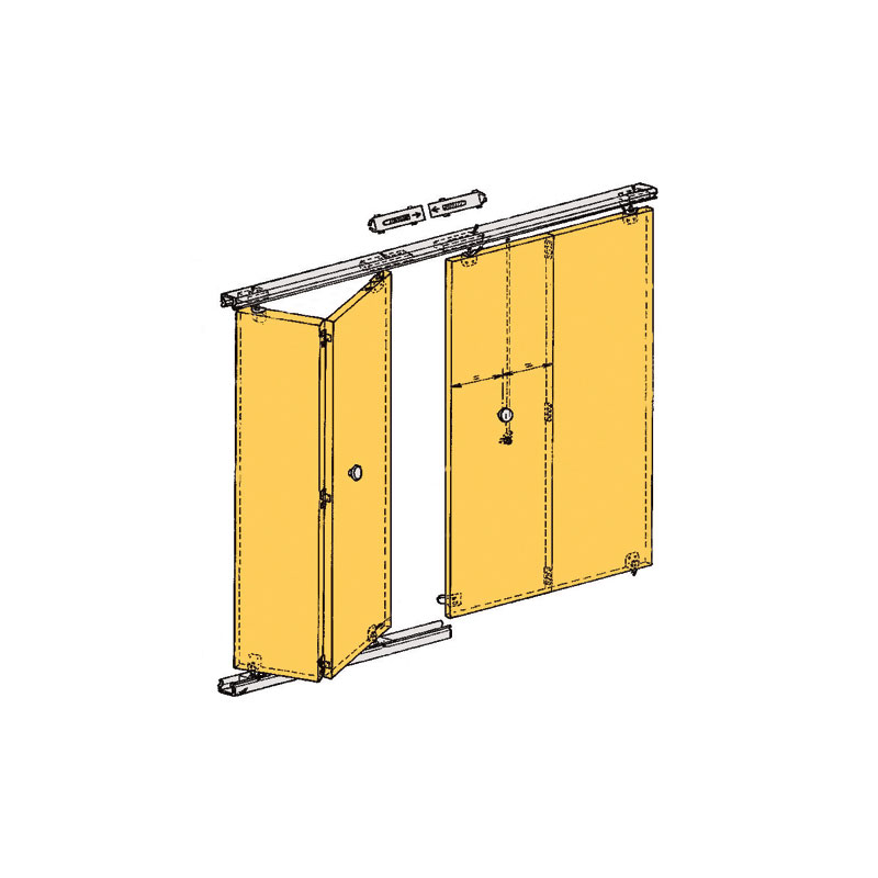 Ferrure pour 1 porte pliante avec 2 vantaux de hauteur maxi. 2450 mm, largeur 550 mm.Garniture avec guidage au sol et sans rail.
