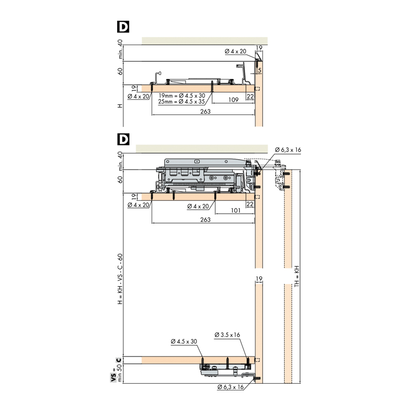 Les ferrures coplanaires Frontino 20 et 40 permettent d’aménager des meubles d’intérieur, de bureau, cuisine et salle de bain avec des ferrures coulissantes dont les portes en position fermée seront dans le même alignement.Cela renforce l’esthétisme du mobilier en éliminant les jeux et décalages entre vantaux des ferrures coulissantes traditionnelles.Utilisable pour tous caissons haut et bas.Garniture complète avec rail.