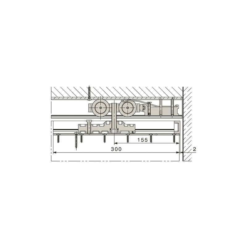 HAWA-Junior 120 B, pour portes pesant jusqu’à 120kg par vantail, est équipée de suspension à profils porteurs permettant une hauteur minimale d’installation.
