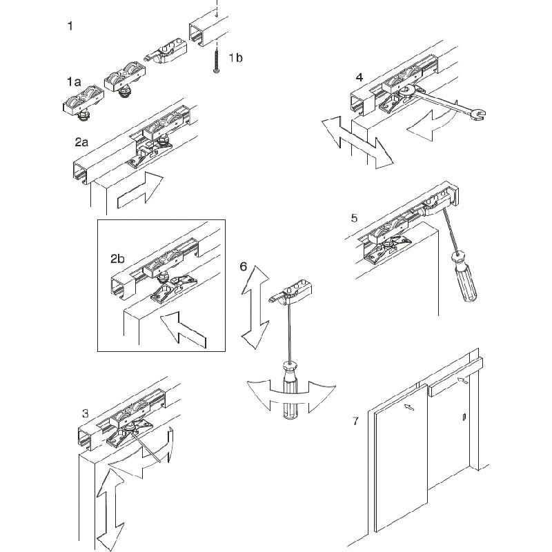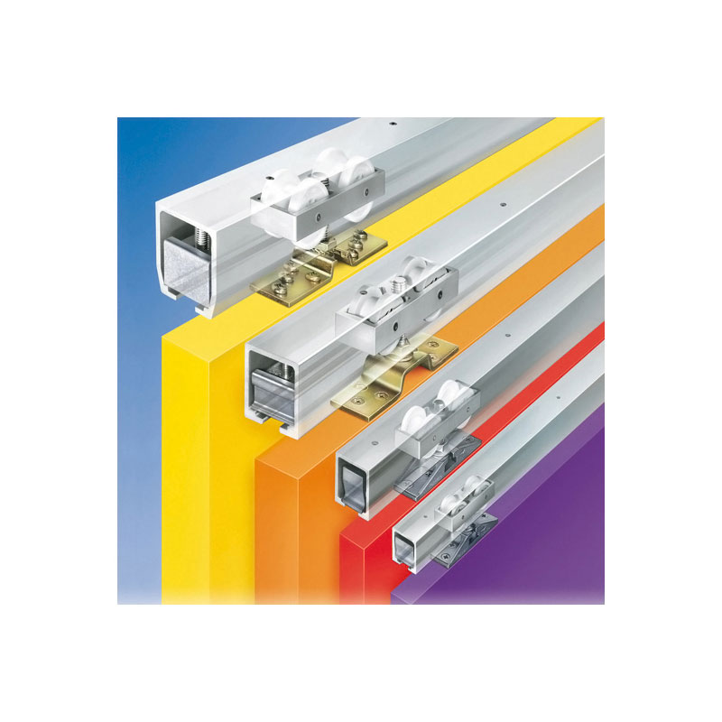 Les suspensions à 2 voies vous permettent d'engager et de dégager le vantail, en l'introduisant latéralement ou de face.Le bandeau de finition doit être démontable.