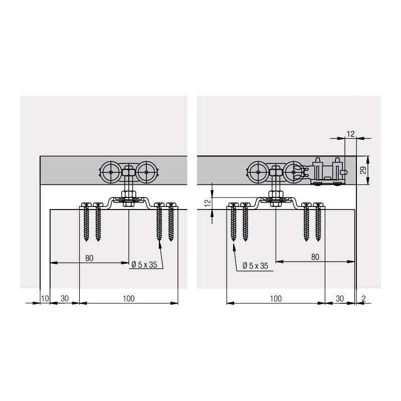 Ferrures de grande fiabilité au montage simple, pour séparation de pièce.Livré sans rail.