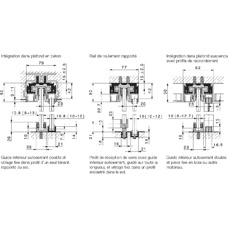Pour vantail de largeur mini : 750 mm.Pour porte verre trempé ESG de 8 à 12,7 mm.