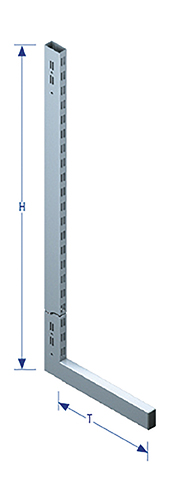 Montant tube rectangulaire 60x30x2mm.Double perforation 5x28mm à l'avant et à l'arrière du montant, et sur les côtés pour fixation des barres de liaison.Pas de 50mm.Livré avec 2 ou 3 embouts de finition pour montant et pied.Pour vérins avec filetage M10 (à commander séparément).