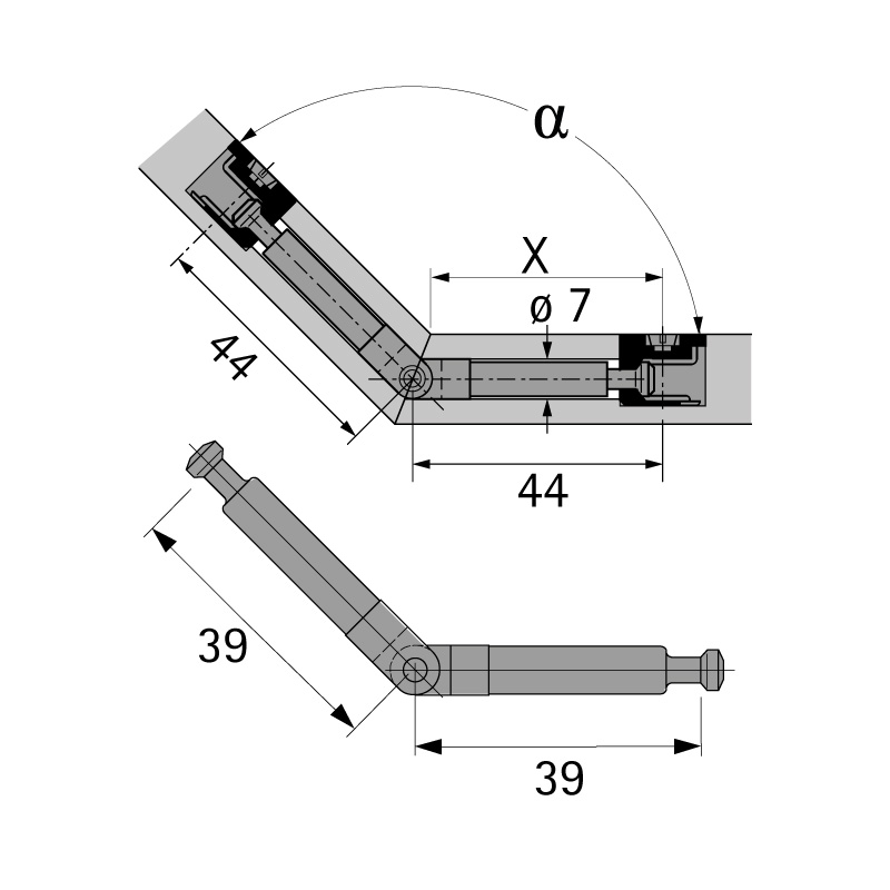 Goujon pour Rastex 12/15 réglable de 90° à 180°.