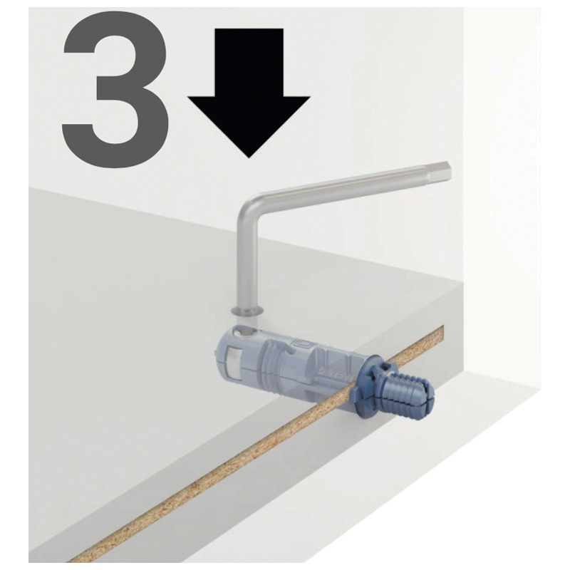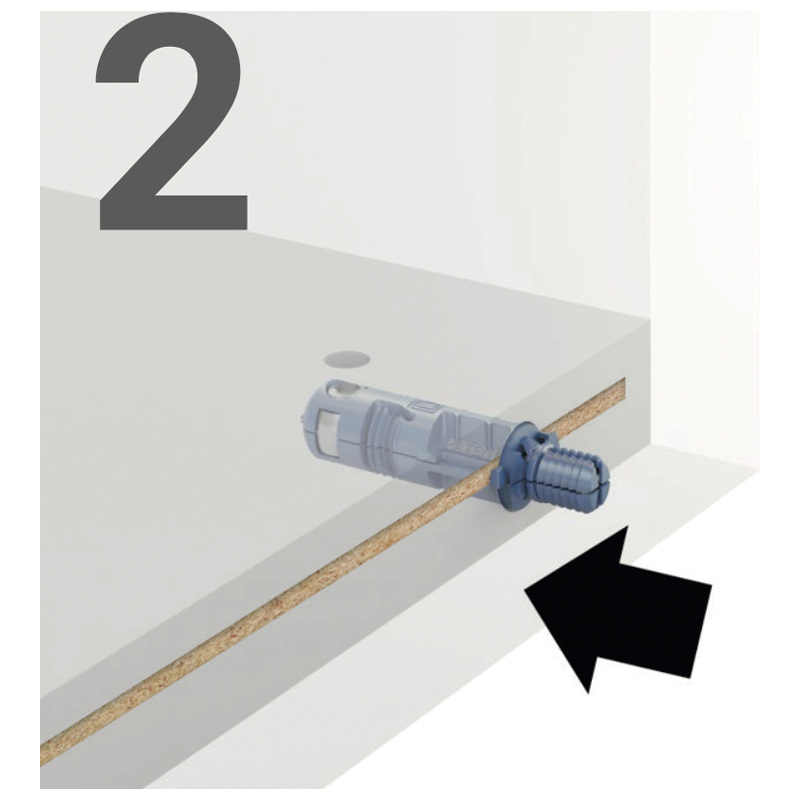 Les goujons d'assemblage BLU permettent un assemblage rapide des panneaux.Ils ne nécessitent pas de quincaillerie supplémentaire.Ils peuvent être insérés manuellement dans le meuble et sont adaptés au pré-montage automatisés en série.Le résultat est robuste grâce aux ailes et bases d'expansion et également discret, seul un trou de Ø 6 mm est apparent.