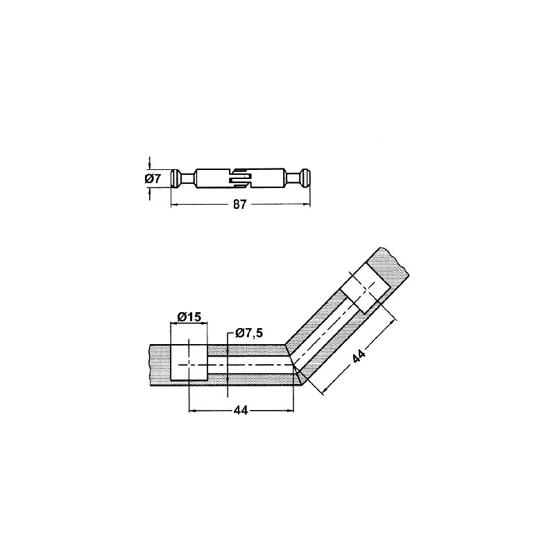 Goujon acier perçage de Ø7,5 mm.Longueur totale 87 mm.