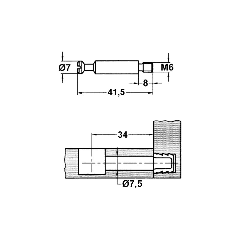 Goujon acier, axe de perçage 34 mm.