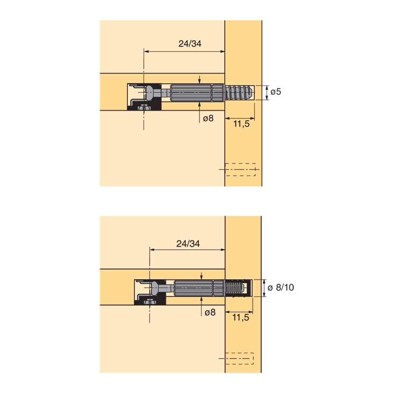 Douille Ø8 plastique et d’une tige acier nickelé.