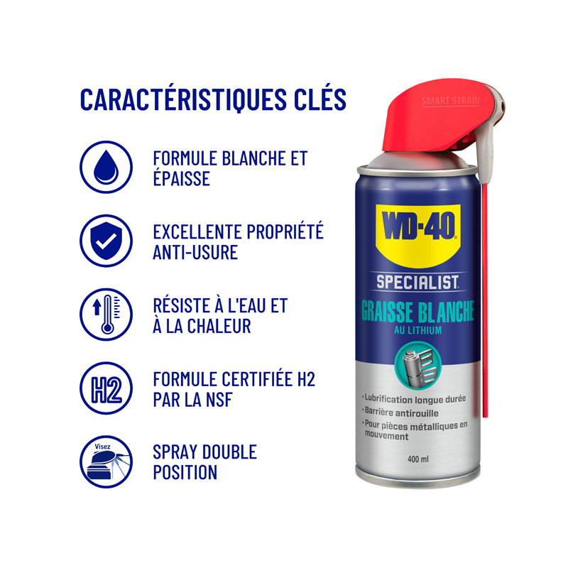 recommandé pour roulements, treuils, loquets, pistons, convoyeurs, rails de portes, câbles, glissières, pompes