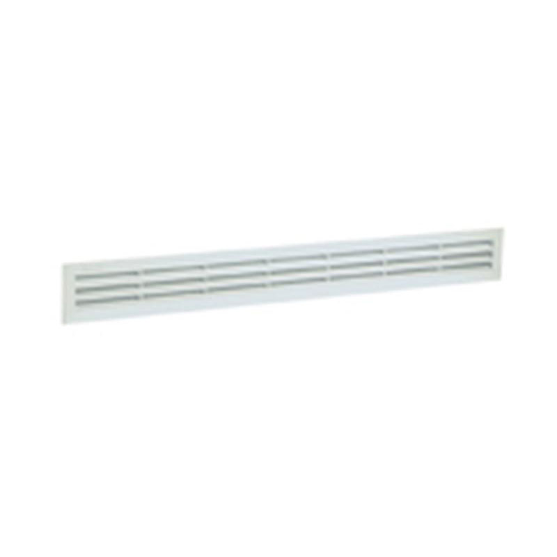 Grille aération rectangulaire longue : En polystyrène Blanche A coller ou à visser Sans moustiquaire Dimensions extérieures en mm : H.60 x L.305 Étudiées pour habiller les passages d'air en haut et bas de portes [...]
