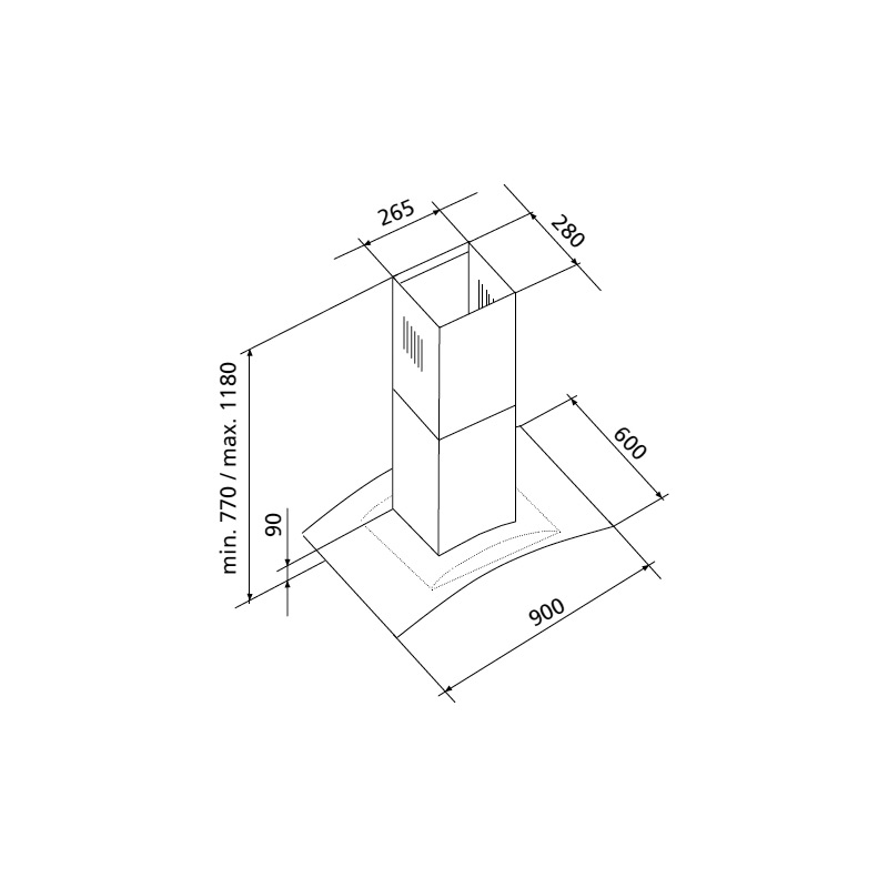 Performances• Évacuation ou recyclage• Débit maximum d’aspiration (norme EN61591) o en sortie libre : 721 m³/h o en évacuation : 700 m³/h• Pression à la vitesse maximale : 471 PaConfort d’utilisation• Commandes électroniques rétroéclairées• 2 vitesses d’aspiration + 1 intensive• Fonction Booster : accroît à son maximum le débit de lahotte pendant 7 minutes• Spots LED 4 x 1,5 W• Clapet anti-retour livré de sérieFiltres• 2 filtres à graisse métalliques, lavables au lave-vaisselle• 1 filtre anti-odeurs à charbon actif CR410 livré de série• Puissance électrique d’installation : 156 W• 10 A - 220/240 V - 50 Hz• Cordon d’alimentation : 180 cm - Avec prise• Distance min. hotte/plan de cuisson électrique : 650mm• Distance min. hotte/plan de cuisson gaz : 750mm
