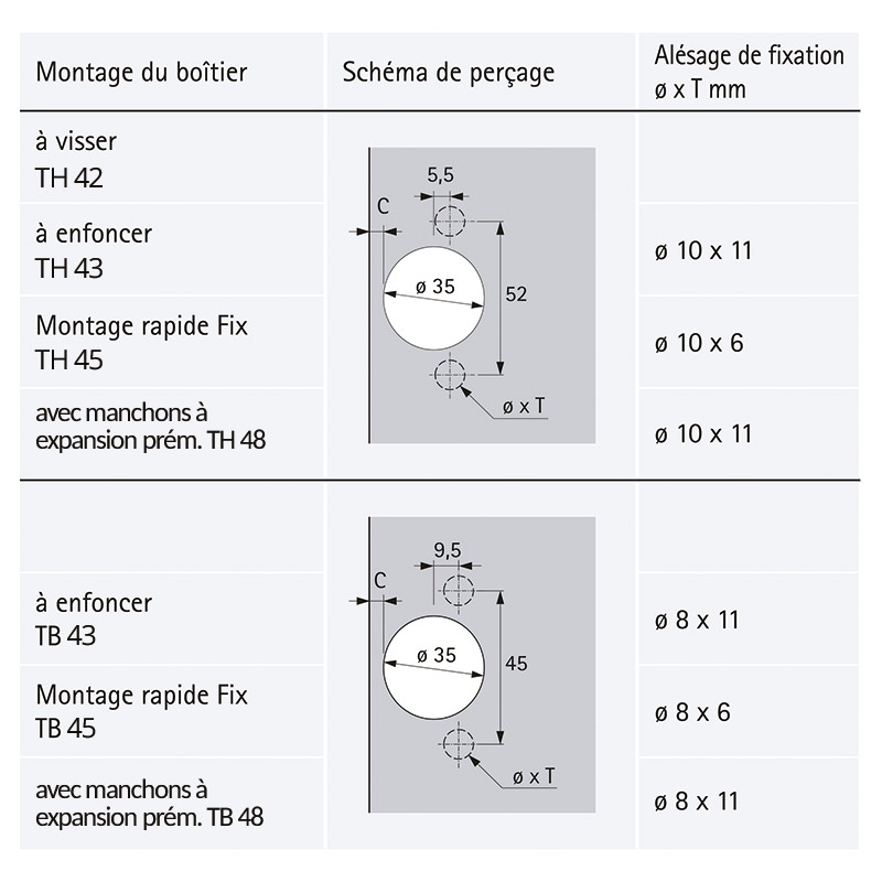 Charnière invisible clipsable.Avec dispositif automatique de fermeture.Push possible
