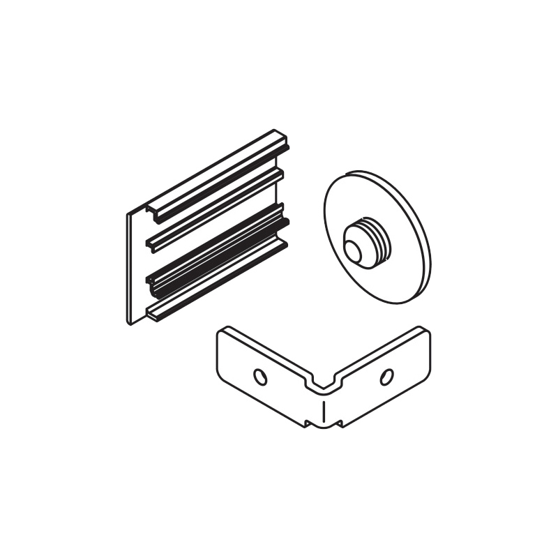 Jeu de caches d'extrémité pour rail de roulement montage mural Junior 80 / 100.Pour garniture Junior 80 /100 B. Composé de : 1 extrémité de cache B, gauche ou droite, 53 mm, [...]