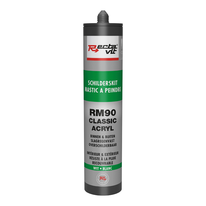 Application :Appliquer Recta-Mastic 90 avec un pistolet pour cartouches, manuel ou pneumatique.Ouvrir la cartouche avec un couteau, la placer dans le pistolet pour mastic et visser l’embout sur la cartouche. Couper l’embout à la largeur du joint à réaliser.Appliquer Recta-Mastic 90 de manière régulière avec le pistolet. Après application, enlever l’excédent de mastic etlisser le joint avec un couteau pour joint ou une spatule, à sec ou avec un agent le lissage comme le white spirit, avant la pelliculisation du mastic.Après la réalisation, nettoyer l’embout et fermer le avec le capuchon d’origine.Recta-Mastic 90 est recouvrable avec la plupart des peintures, toujours attendre que le joint soit complètement sec.