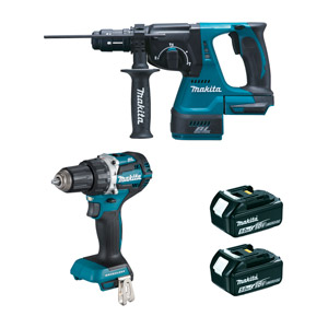 Le combokit contient : perceuse à visseuse Brushless, visseuse à chocs Brushless, 2x 3.0Ah batteries, multi-chargeur, Coffret TSTAK® II