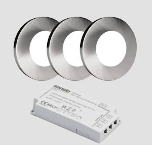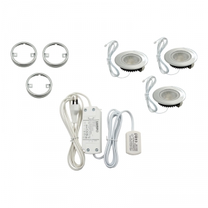 Kit comprenant :- 3 spots Ø67mm à encastrer- 1 alimentation 350mA équipée d'un câble d'alimentation secteur longueur 2000mm- 1 répartiteur câblé longueur 175mm a 4 sorties mini prises