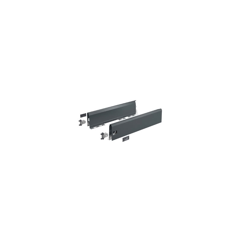 Il se compose de : - 1 paire de côtés de tiroir hauteur 126mm (1 droit + 1 gauche).- 2 attaches façade à enfoncer.- 2 cache latéraux avec logo HETTICH.- Les accessoires de fixation.