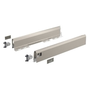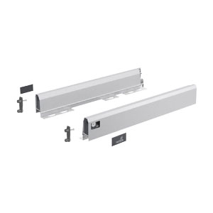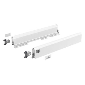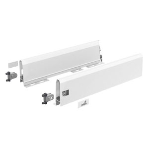 Il se compose de : - 1 paire de côtés de tiroir hauteur 126mm (1 droit + 1 gauche).- 2 attaches façade à enfoncer.- 2 cache latéraux avec logo HETTICH.- Les accessoires de fixation.