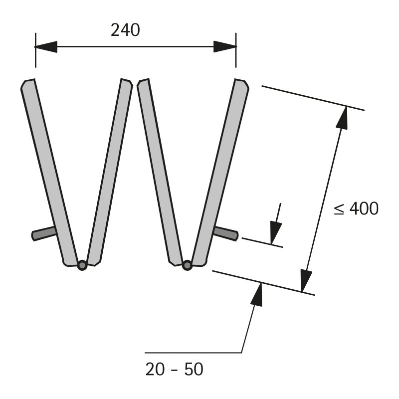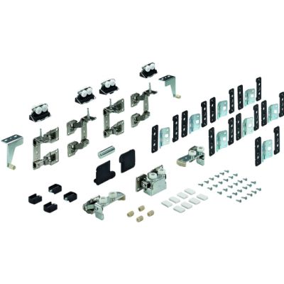 Le kit comprend toutes les pièces nécessaires pour 1 porte coulissante pliante avec 4 vantauxIl est recommandé de ne pas dépasser la largeur intérieure du corps de meuble de 800 mm. La construction du panneau supérieur doit être conçue de manière à ce que le panneau supérieur ne puisse pas plier de plus de 1,5 mm sous la charge des portes pliées.Kit composé de :