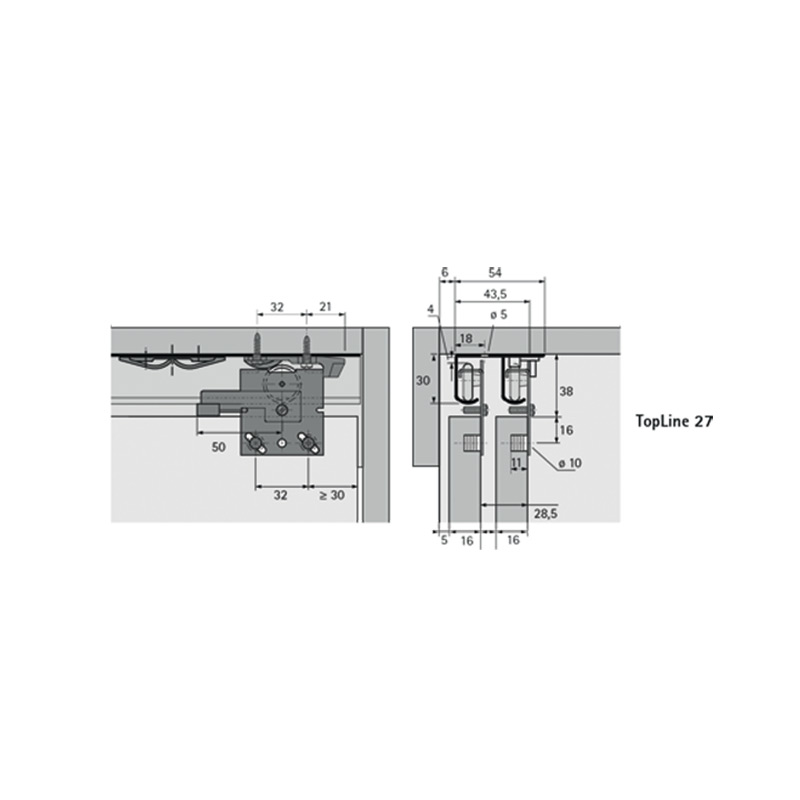 Pour construction d'armoire à porte rentranteLargeur de porte mini 500 mmSimple construction de corpsRéglage en hauteur via les trous oblongs ± 1,5 mm