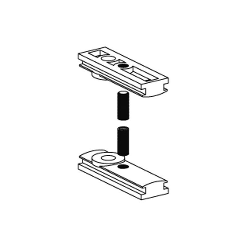 Kit de 2 fixations (haute et basse) permettant la pose des pivots de vitrine réf. 744 38310 00082 sur une structure aluminium de vitrine, pour portes pivotantes.S'insèrent dans une traverse basse ou dans le profil montant arrondi.Réglage latéral de la porte par coulissage de la fixation.