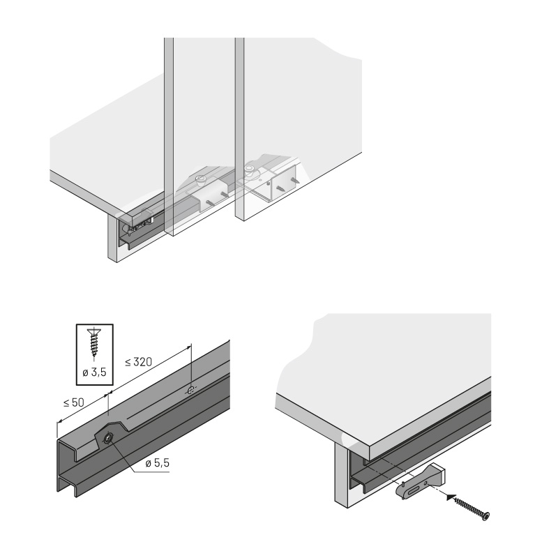 Pour Top Line 1, 25, 27.Pour montage mixte avec retrait du socle de 28,5 mm.Kit composé de : Pièces de guidage pour porte avant Pièces de guidage pour porte arrière Butées de fin [...]