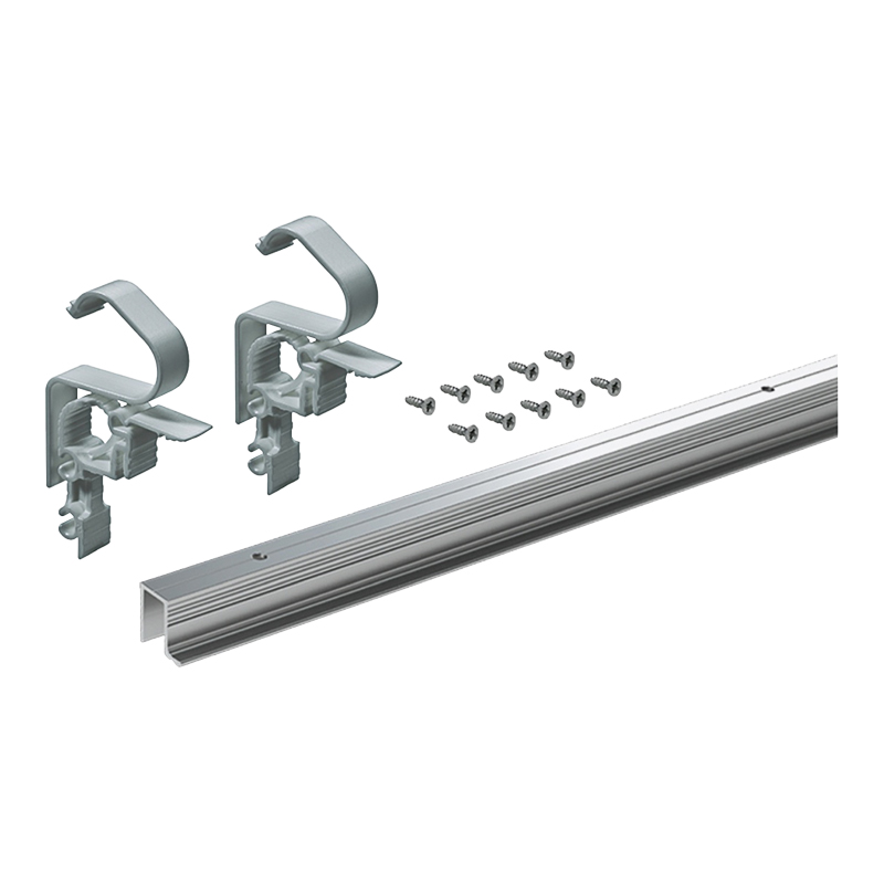 Kit composé de : - 1 profil de coulissage- 2 pinces de montage du profil- Vis de fixationPosition de vissage préperforée.