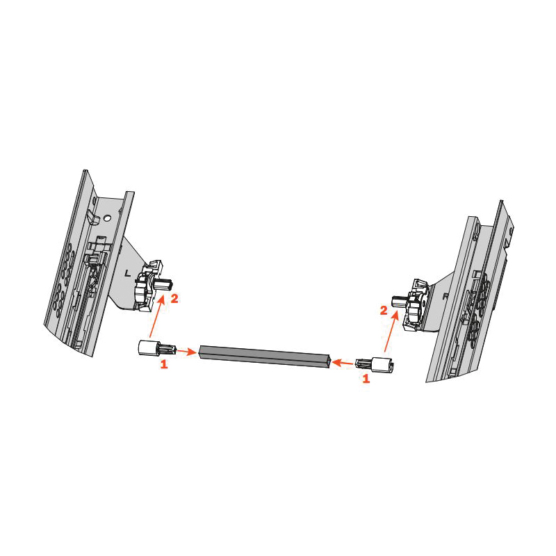 Le système de synchronisation pour coulisses Futura avec ouverture Push a été réalisé pour garantir l'ouverture parfaite des tiroirs de toute largeur sans effort et sans compromis.Sa fonction est de connecter les deux coulisses qui deviennent ainsi un seul élément. Une pression sur n'importe quel point de la façade (même aux extrémités) est suffisante pour que le mécanisme Push se mette en action et qu'ainsi le tiroir s'ouvre automatiquement.Le système de synchronisation peut être appliqué pour n'importe quelle largeur de tiroir. Plus le tiroir est large, plus sa fonctionnalité est évidente et sera appréciée.Il est conseillé pour les tiroirs de largeur supérieure à 800mm.