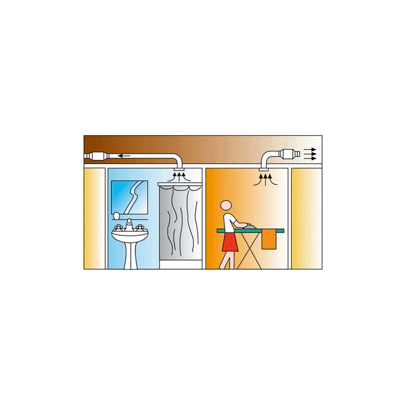 Cet ensemble est particulièrement adapté pour utilisation en salle de bain. Il permet aussi de ventiler tous types de locaux de petites et moyennes dimensions pour évacuer l'humidité et les odeurs