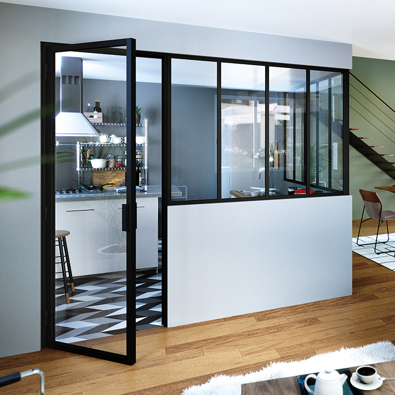 Kit dormant seul pour porte battante verrière en aluminum granité.Les profils sont recoupables.