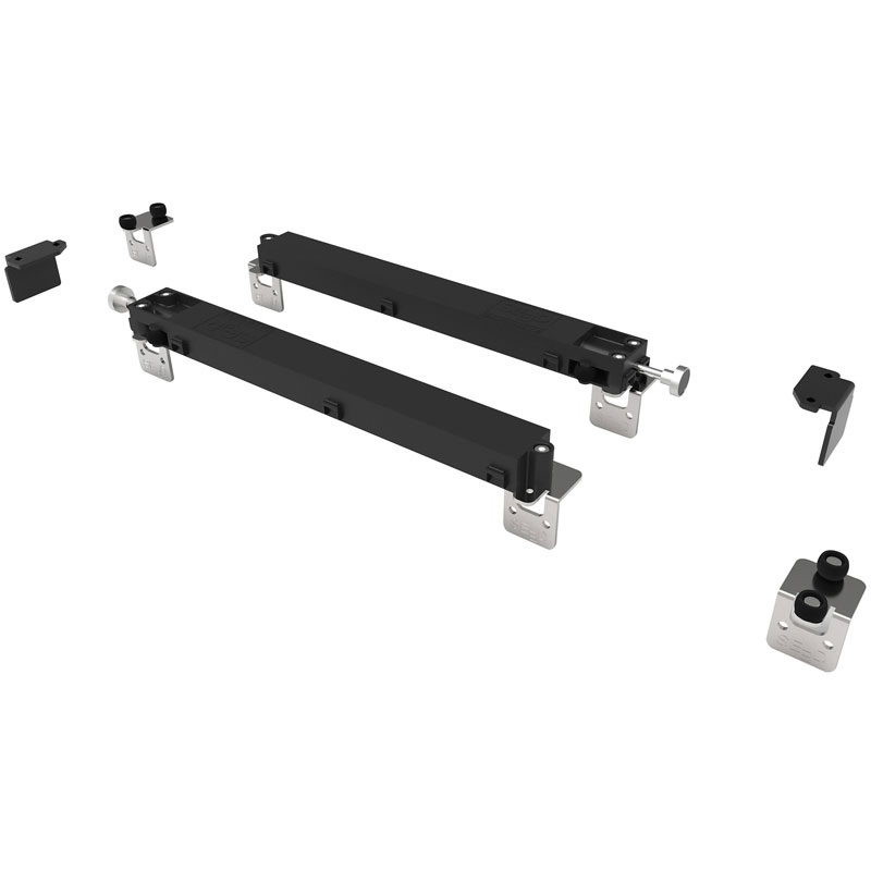 Amortisseur utilisable avec rail de guidage haut aluminium largeur 82.Pose sur chant du vantail avec fixation latérale.Il s'intègre dans le rail haut, ce qui le rend totalement invisible.Peut se positionner côté fermeture mais aussi côté ouverture (Si 2 amortisseurs sont intallés sur un vantail, l'amortisseur dans les 2 sens).Il maintient le vantail, soit fermé, soit ouvert.Il remplace les guides hauts.Jeu de 2 amortisseurs (1 droite, 1 gauche)Livré avec 2 guides hauts et 2 équerres.