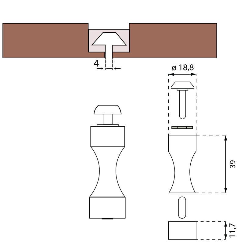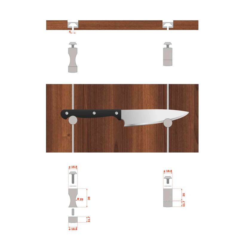 Supports pour couteaux à fixer sur le profil mural titanium ou aluminium PIN.Kit composé de : - 1 paire de supports incurvés- 2 écrous à têtes rectangulaires- 2 joints- 2 embouts- 2 goujons pour embouts- 2 supports fendus- 2 écrous à têtes rectangulaires- 2 joints- 2 embouts