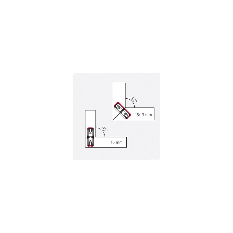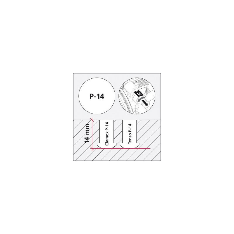 Profondeur de fraisage 14 mm, pas de changement de réglage de la machine pour passer du Tenso P-14 au Clamex P-14.Stabilité supplémentaire avec les tabs aux côtés.Idéal pour les connexions de 90° avec des panneaux à partir de 16 mm et des connexions en onglet de 45° avec des panneaux à partir de 18/19 mm.Encore plus de flexibilité pour les angles.