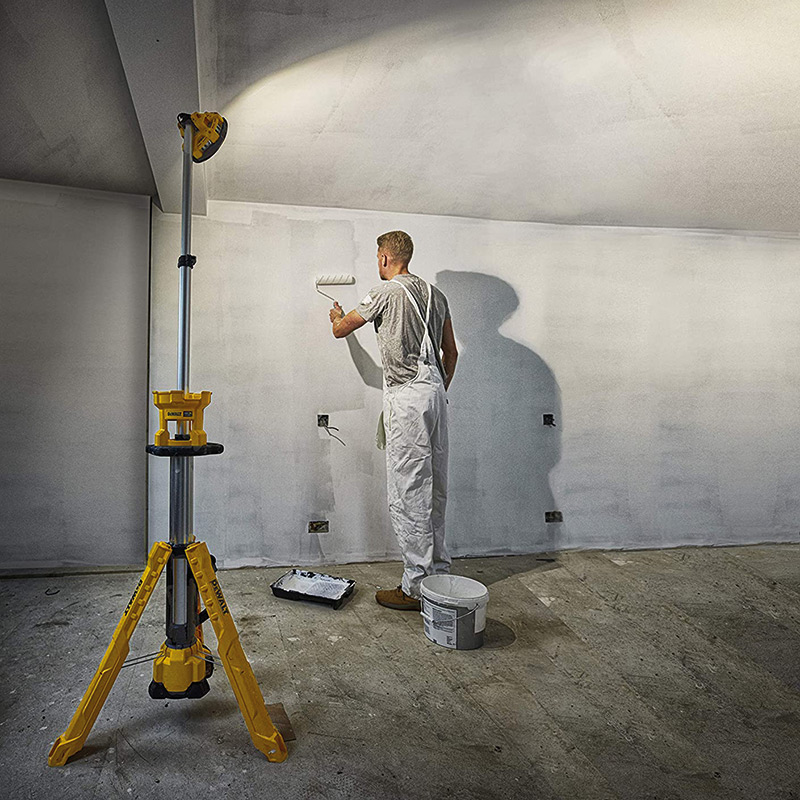 Lampe LED trépied XR 18V avec une intensité lumineuse variable 3000, 1800, 1000 lumens.Le pied et le compartiment de la batterie offre un centre de gravité bas pour une stabilité maximale.La tête de la lampe tourne pour le contrôle directionnel du flux lumineux.Jusqu'à 5 heures d'autonomie à la puissance maximale avec une batterie XR FLEXVOLT 9.0Ah.Hauteur variable jusqu'à 2,2 m maximum, pliable jusqu'à 1 m pour faciliter le transport et le stockage.Indice de protection - IP55