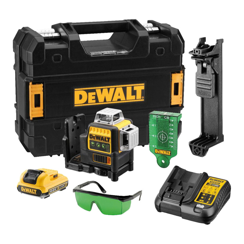 Livré avec Batterie XR 12V 2Ah Li-Ion - Chargeur - Cible - Lunettes de lecture - Support de plafond - Coffret